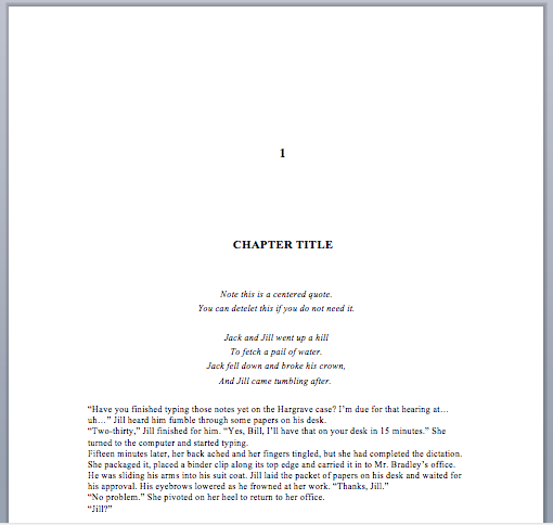 Centered quote in first chapter